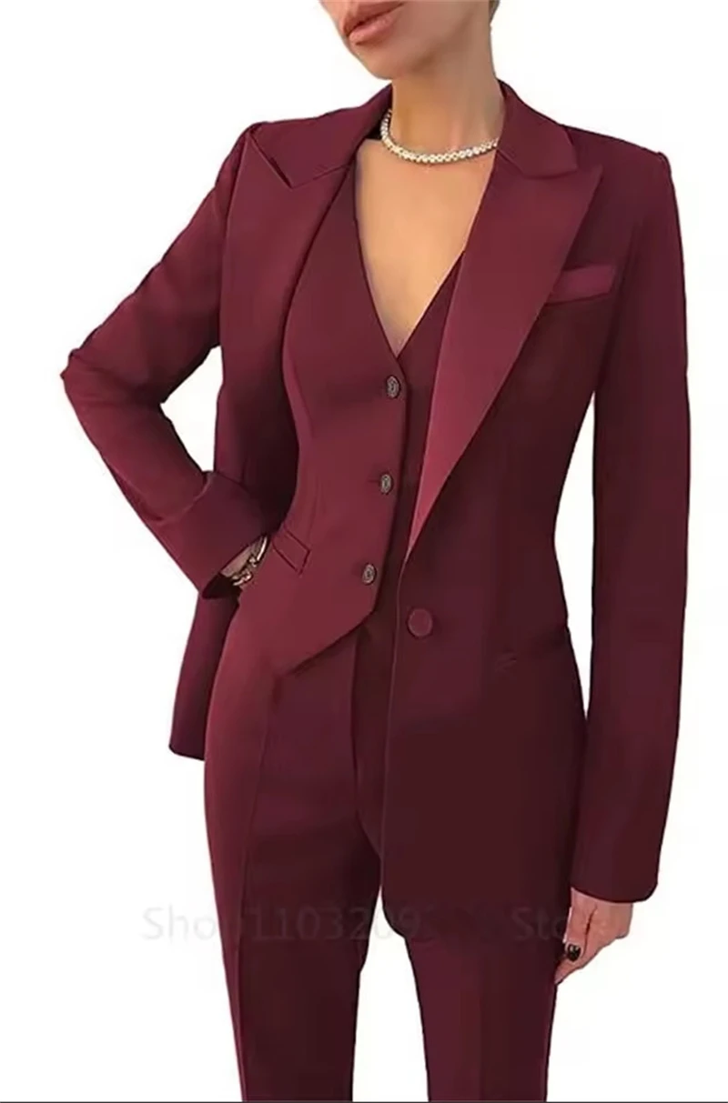 Home Tailor-Made Suit Slim Fit Notch Lapel 3 Pieces Workplace Style Blazer Female Business Work Wear (Jacket+Vest+Pants)
